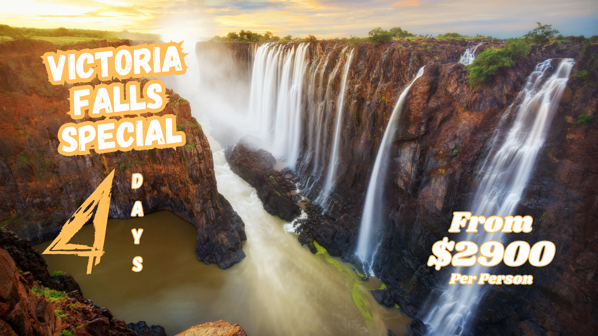 Experience the sheer power and breathtaking beauty of Victoria Falls, one of the world's most awe-inspiring natural wonders. Known as ‘Mosi-oa-Tunya’ or ‘The Smoke that Thunders,’ this majestic waterfall straddles the border between Zambia and Zimbabwe, sending mist into the sky and creating a spectacle of sound and sight.